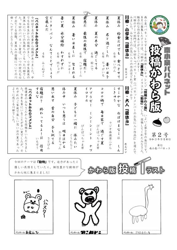 第2号のテーマは「夏休み」イラストのテーマは「動物」でした