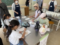 わりばし鉄砲は、輪ゴムで固定するのが難しく、スタッフや高校生ボランティアに教えてもらいながら頑張っていました。